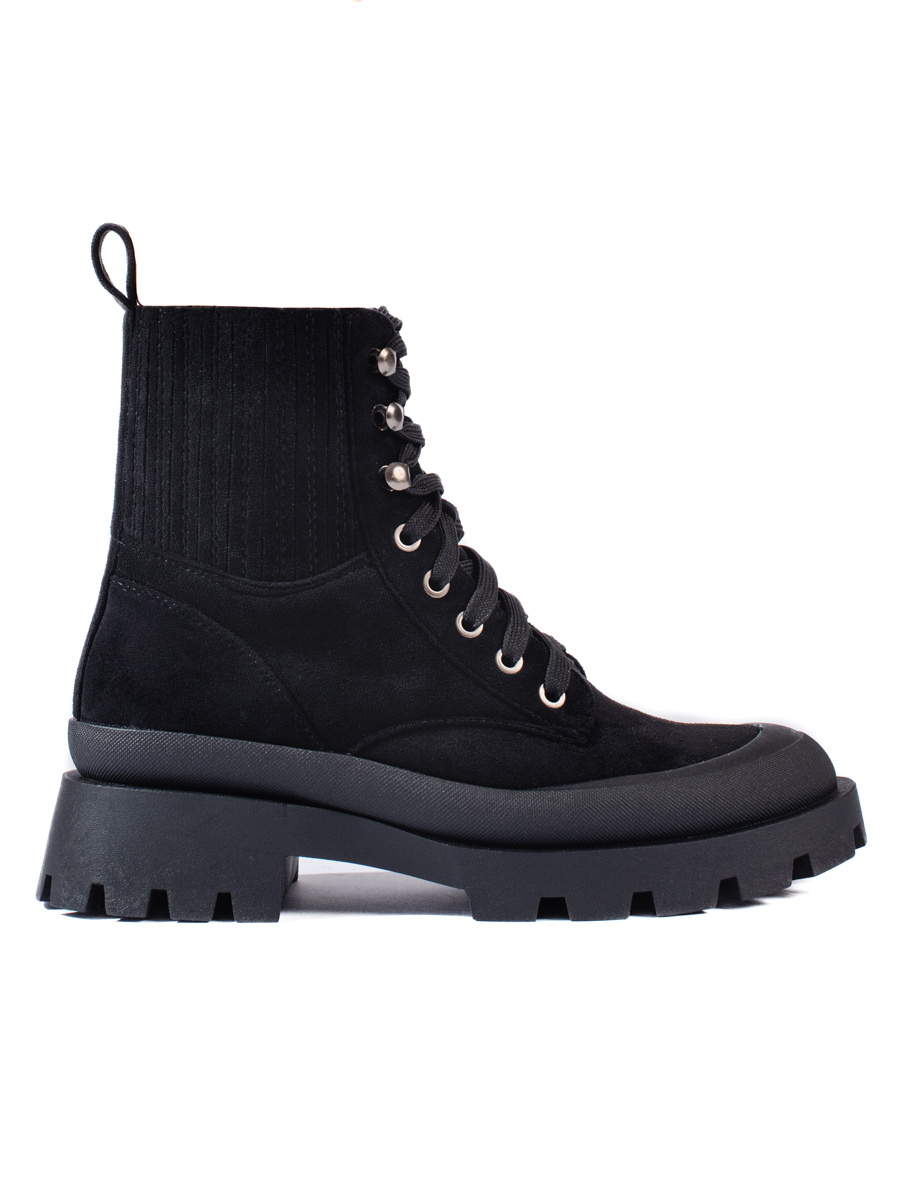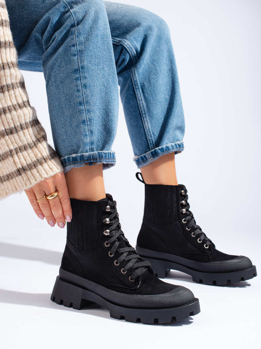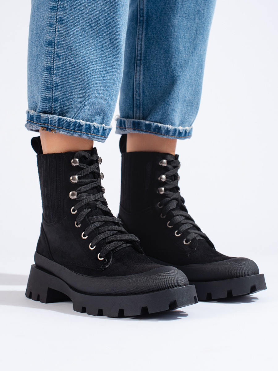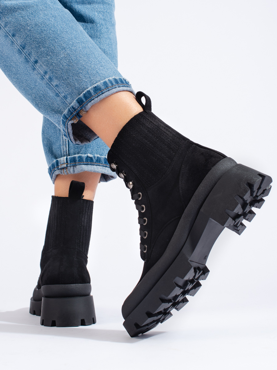 Moderní černé dámské kotníčkové boty na plochém podpatku